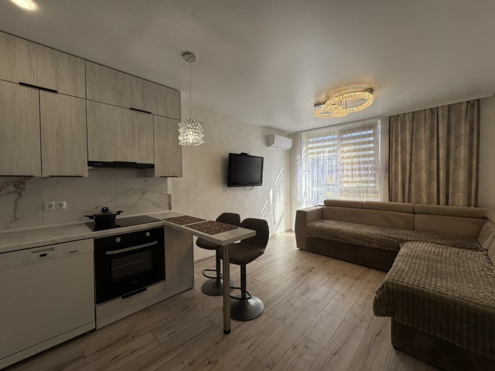 Новий ремонт,робили для себе, панорамні вікна, є вся техніка, кондиціонер, пралка,телевізор,посудомийка, холодильник, мікрохвильовка, духовка,фільтри на воду, підігрів підлог, інтернет.
