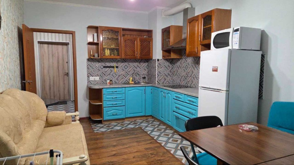 Квартира розташована на 13-му поверсі 17 поверхового цегляного будинку, загальною площею 47 кв.м, кімната 23 кв.м., кухня 15,6 кв.м, лоджія не засклена, санвузол сумісний, душ, зроблений якісний ремонт, з меблями, вбудована кухня, є гардеробна, із техніки в наявності холодильник, пральна машина, мікрохвильова піч, водонагрівач