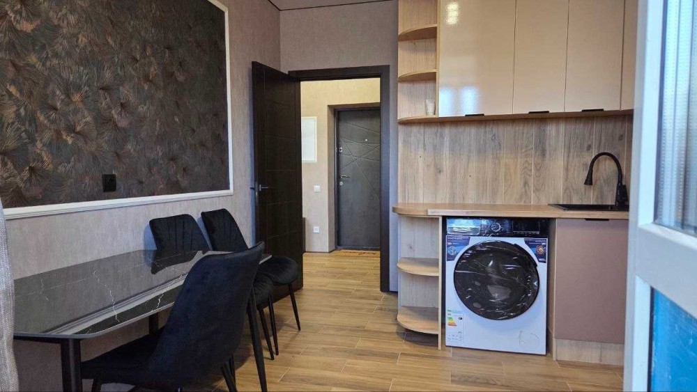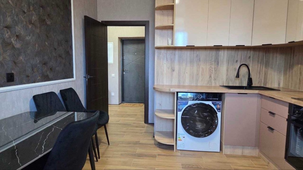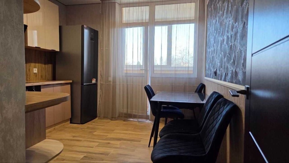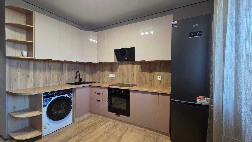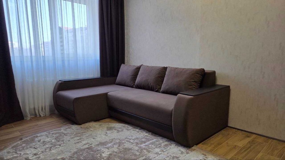 В квартирі зроблений якісний ремонт, є необхідні меблі: на кухні: вбудована кухня, стіл зі стільцями, в кімнаті: розкладний диван, вбудована шафа-купе, із техніки: холодильник, пральна машина.