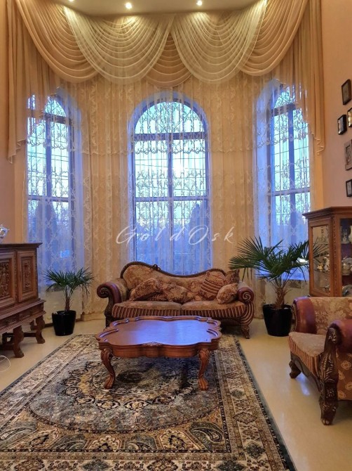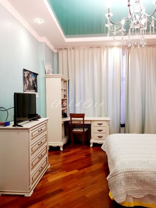 4 спальні, кабінет, 2 вітальні (в одній 6,5 м стеля), 2 кухні, 5 санвузлів.