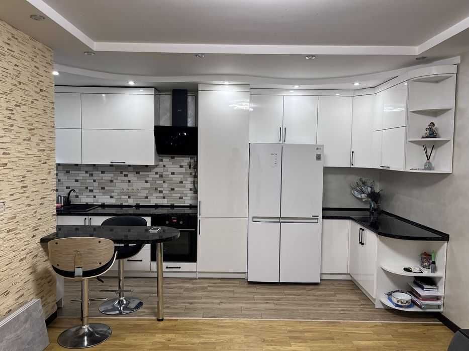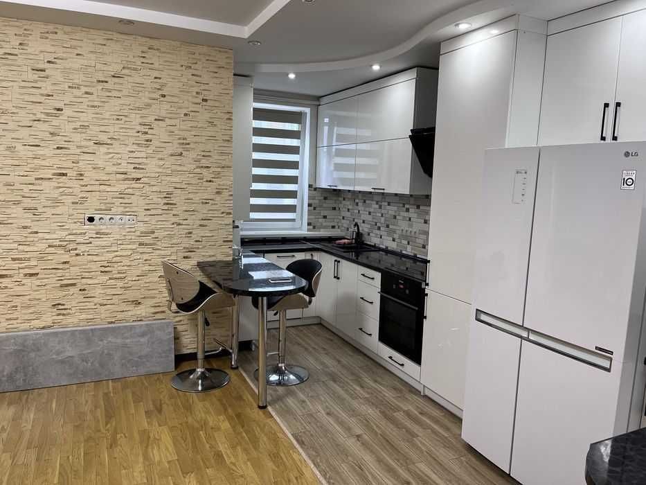 Квартира укомплектована необхідною побутовою технікою: посудомийна машина, пральна машинка, холодильник, електрична плита, духовка, електрочайник. Проведений інтернет, є робочий стіл. Тепла підлога зроблена в кухні, ванній та прихожій.