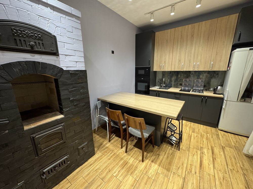 Кухня з сучасною грубою (фото)