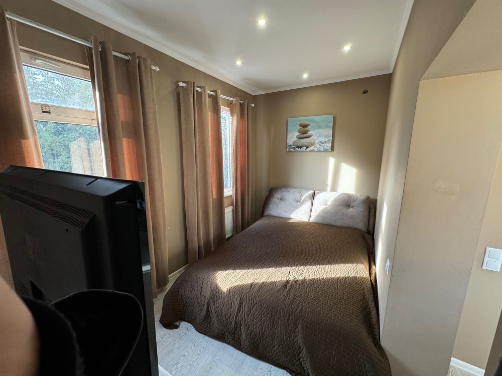 Спальня, гардеробна, гостьова, велика кухня з вбудованою технікою(духовка, електро плита, витяжка), санвузол(душова кабіна, мойдодир), приміщення для праски та пральні.(стиральна машина, пилосос). Повністю Оборудовано під життя.