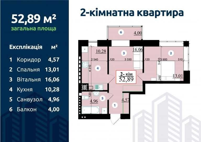 • Общая площадь 52.89 м2