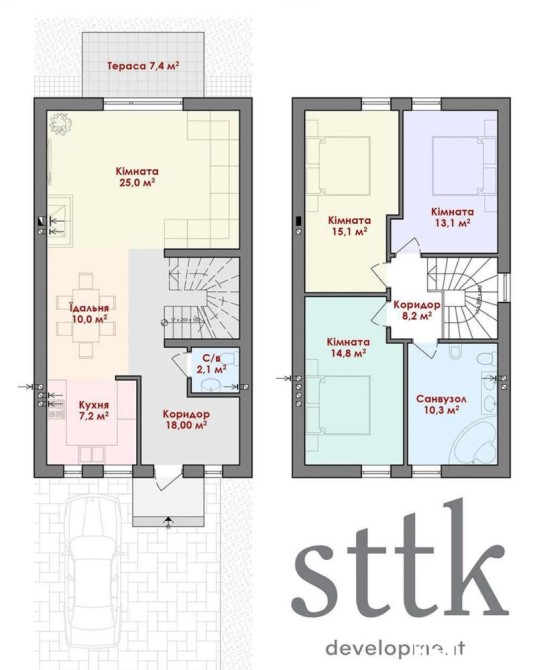 Таунхаус має власний просторий передній заїзд і задній двір площею 1,5 сотки, що забезпечує комфорт та приватність. Завдяки внутрішньому розташуванню будинок буде дуже теплим та економним у використанні ресурсів.