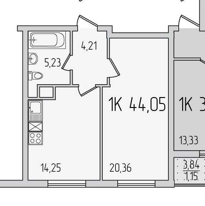 • Общая площадь 43.5 м2
