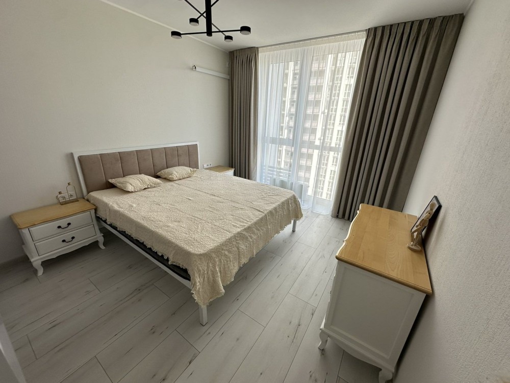 Вперше здається красива, стильна квартира в новому ж.к. Вдале планування. Якісний ремонт, сантехніка і побутова техніка. Вбудована кухня з двокамерним холодильником, варильною поверхнею, духовою шафою, витяжкою та посудомийною машиною. Двоспальне ліжко з ортопедичним матрасом та інші меблі. ВСЕ НОВЕ. Подвійна лоджія (друга частина відкрита). Переваги будинку та комплексу: Індивідуальні лічильники; Газова дахова котельня на тепло та гарячу воду незалежні від міських мереж; Встановлений генератор будинок забезпечений електрикою під час відключень; Власний облаштований пляж для мешканців; Підземний та наземний паркінг. Красива, огороджена територія з ландшафтним дизайном, дитячими і спортивними майданчиками. Сучасні ліфти, охорона, відеоспостереження.