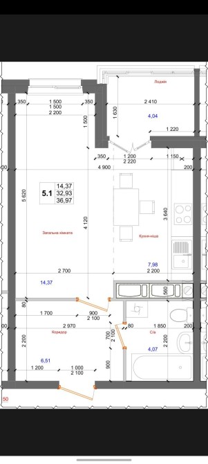 • Общая площадь 37 м2