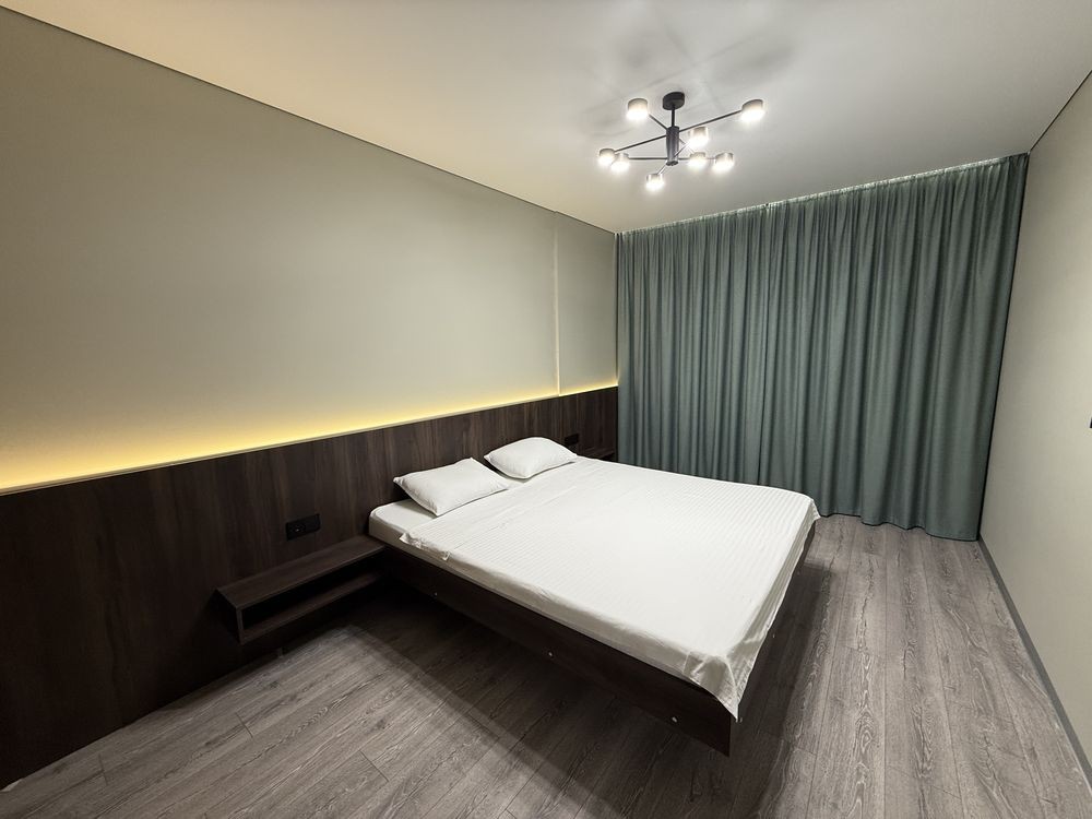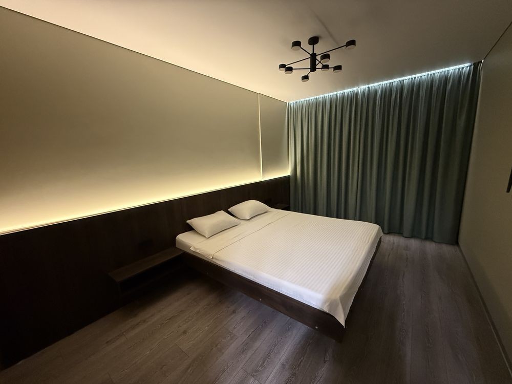 Простора та світла квартира-студія з дизайнерським ремонтом і панорамним видом на Лівий берег. Ідеальний варіант для комфортного відпочинку чи ділової поїздки.