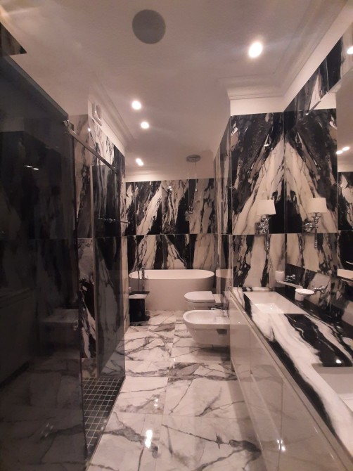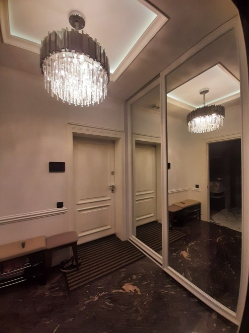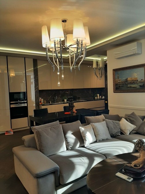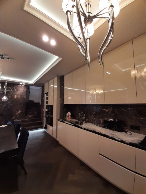 Квартира 100м2, складається з кухні-гостьової, санвузол з душем на першому поверсі та двох спалень та великого санвузла і гардеробної кімнати на другому поверсі.