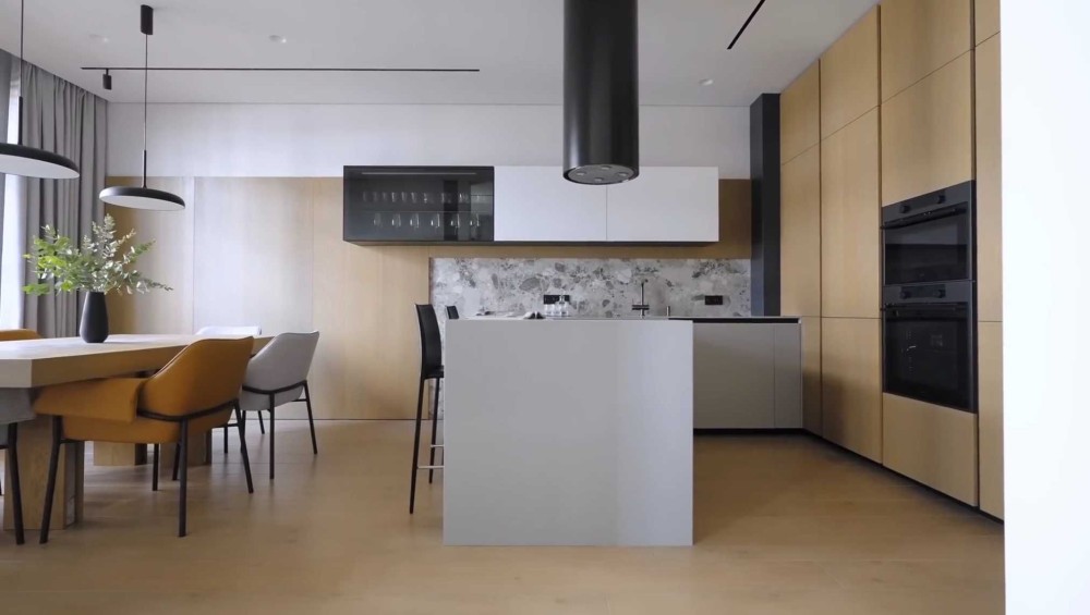 • простора кухня-вітальня, що обєднує простір кухні та вітальні
