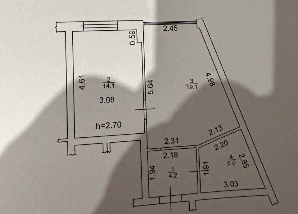 Простора кухня-вітальня 19 м2, правильної форми спальня 14м2, сумісний санвузол 6м2, в якому поміститься як душова так і повноцінна ванна, та просторий коридор з нішею під велику шафу.