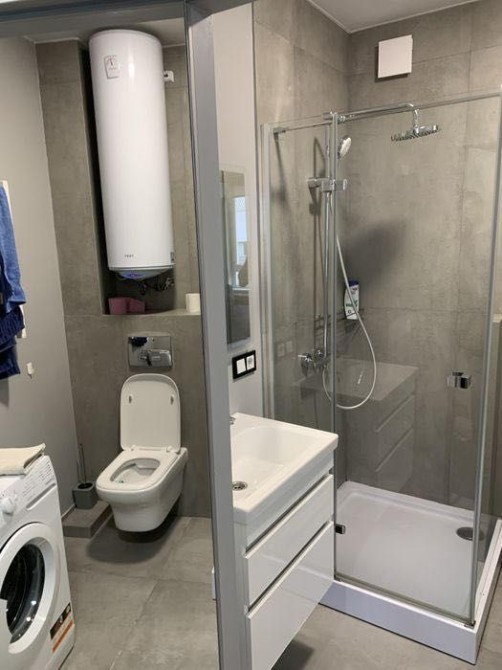 Сучасний санвузол з душовою кабіною, якісною сантехнікою та бойлером.