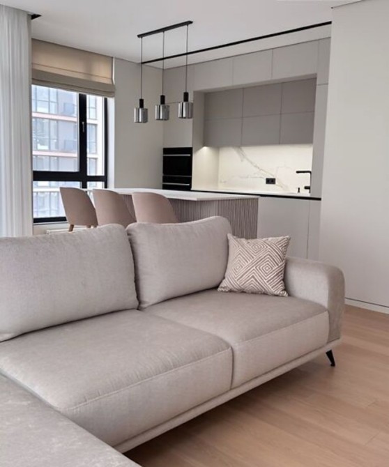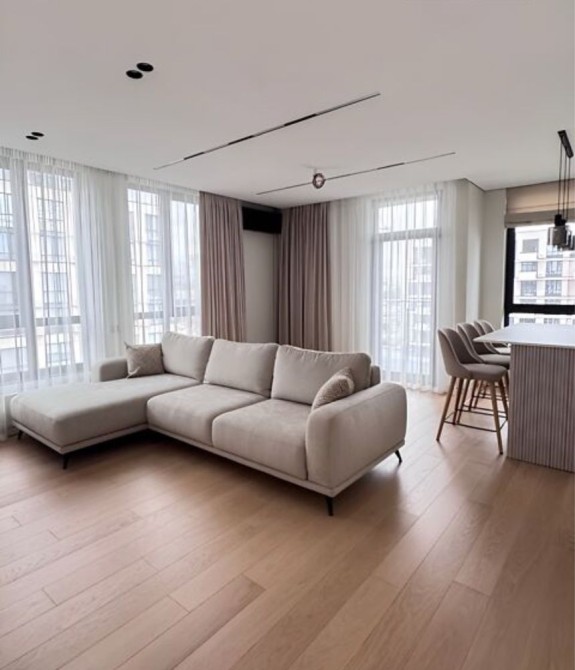 Площа 77.4 м², поверх 5/7. Квартира з якісним ремонтом, продуманим плануванням: кухня-студія, спальня, дитяча, 2 санвузли, гардеробна, пральня.