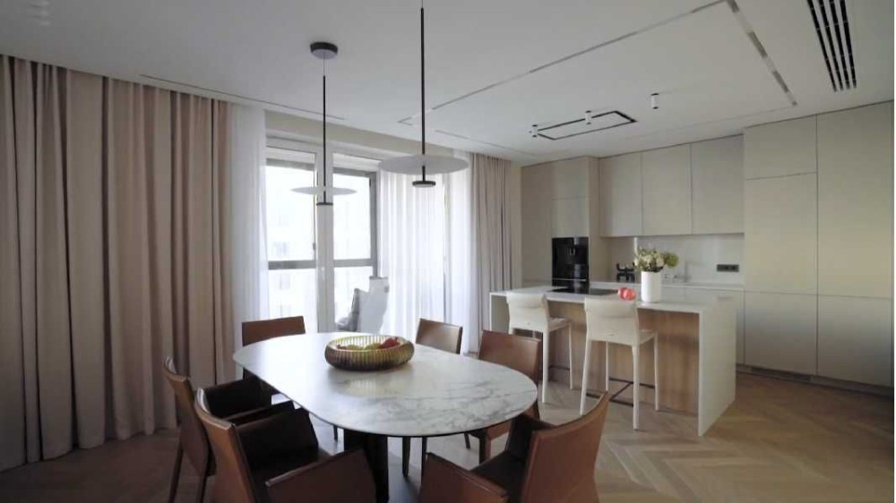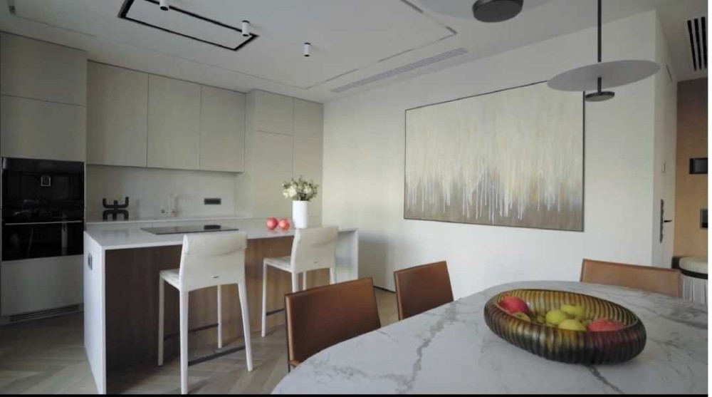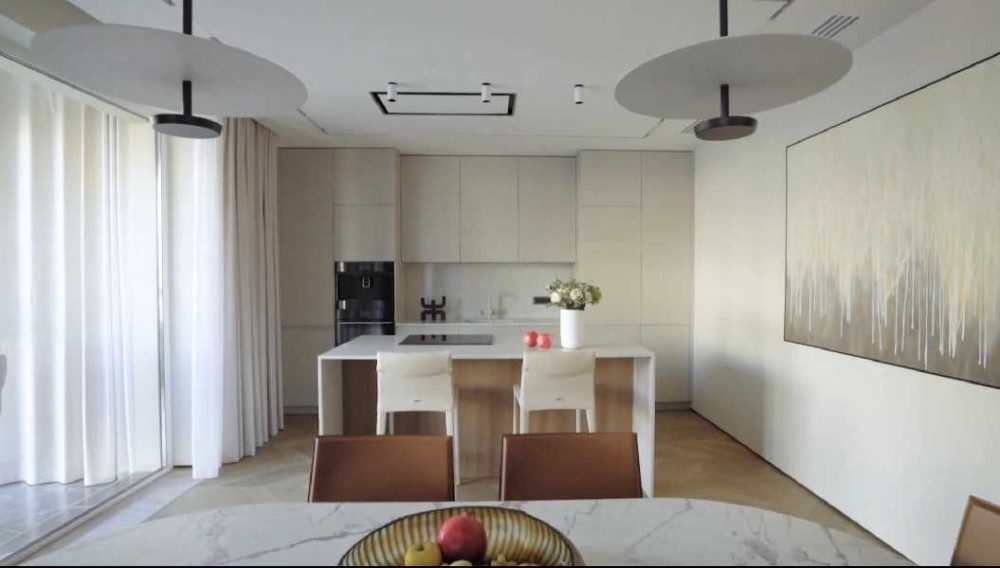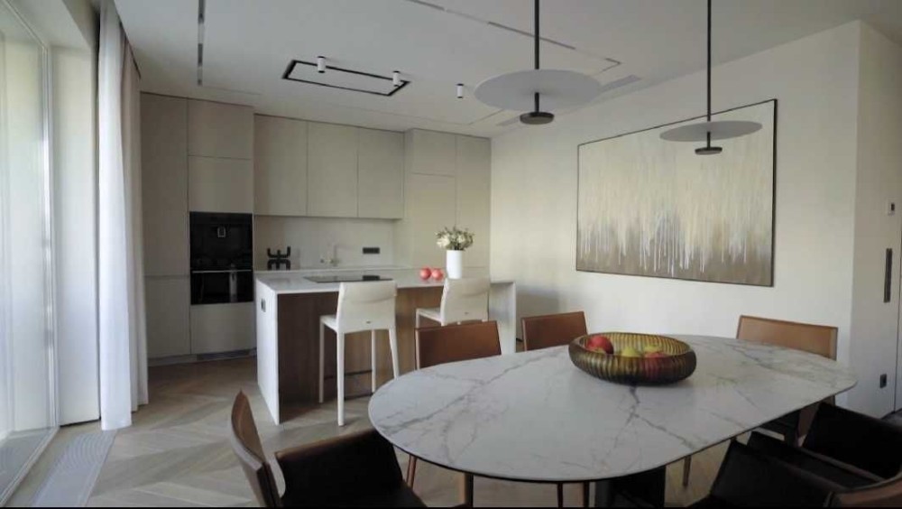 Квартира укомплектована всією необхідною технікою: духова шафа, мікрохвильова піч, варильна поверхня фірми Bosch, 2 кондиціонери, витяжка, телевізори LG (діагональ 50 см), відеодомофон, у санвузлі — бойлер і пральна машина, підігрів підлоги.