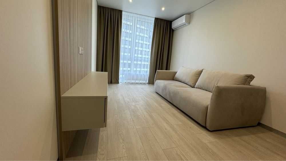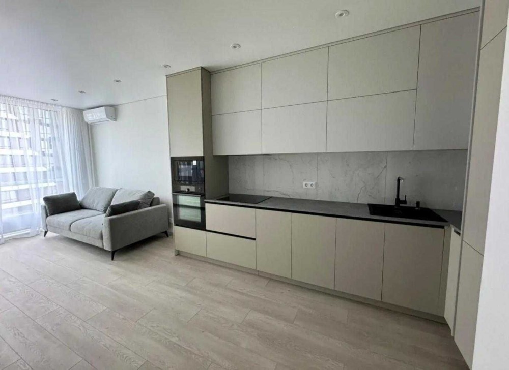 Квартира з видом на р. Дніпро, спланована на кухню-вітальню + спальня. Площа 50 м2. 19 поверх. Сучасний ремонт.