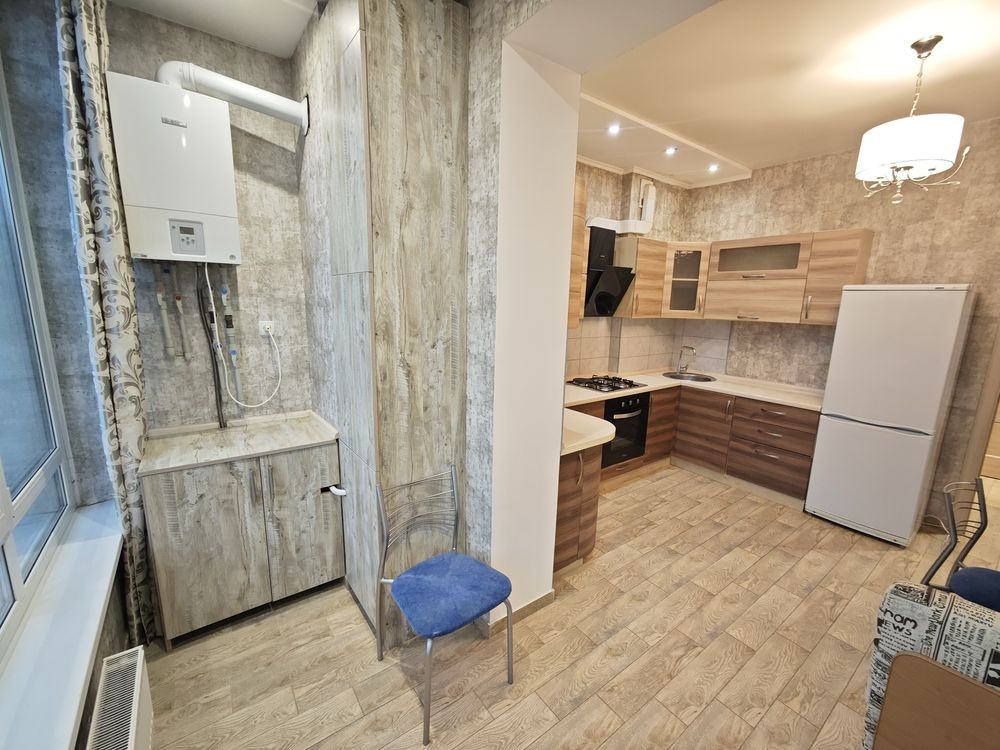 Залишаються всі меблі та техніка. Кондиціонер в кімнаті. Є гардероб. Індивідуальне газове опалення. Тарифи на е/е житлові. ОСББ - 10грн/м².