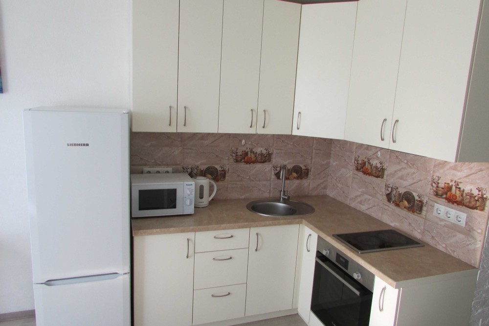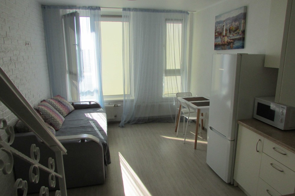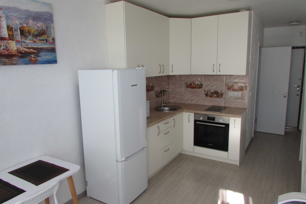 В квартире есть вся необходимая мебель и техника- стиральная машина, холодильник, телевизор, колонка.