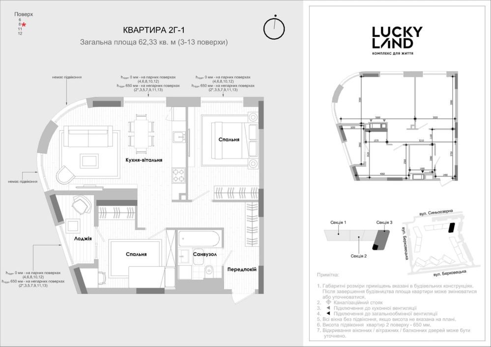 Жк Lucky land 2 кімнатна 62,33 м/кв власник - фото 1