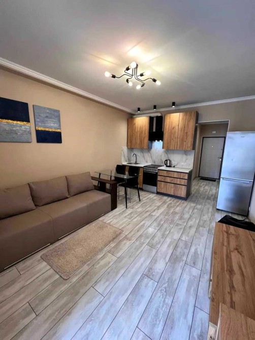 В квартире есть вся необходимая мебель и техника- стиральная машина, холодильник, телевизор, колонка.