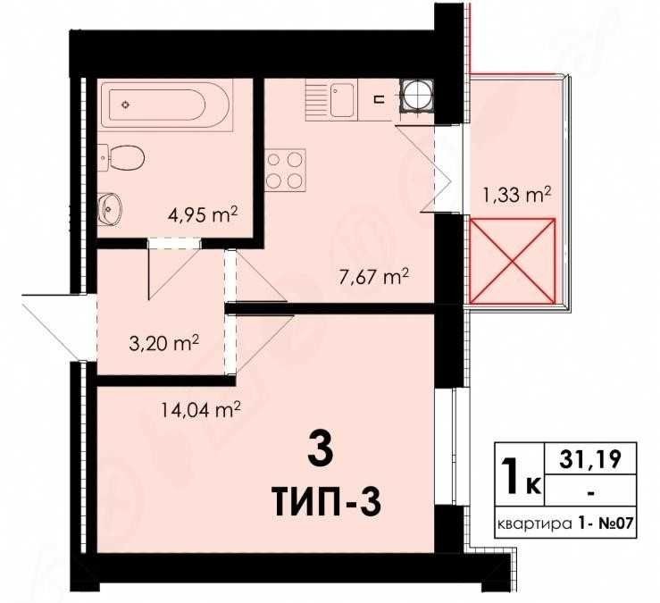 • Общая площадь 31 м2