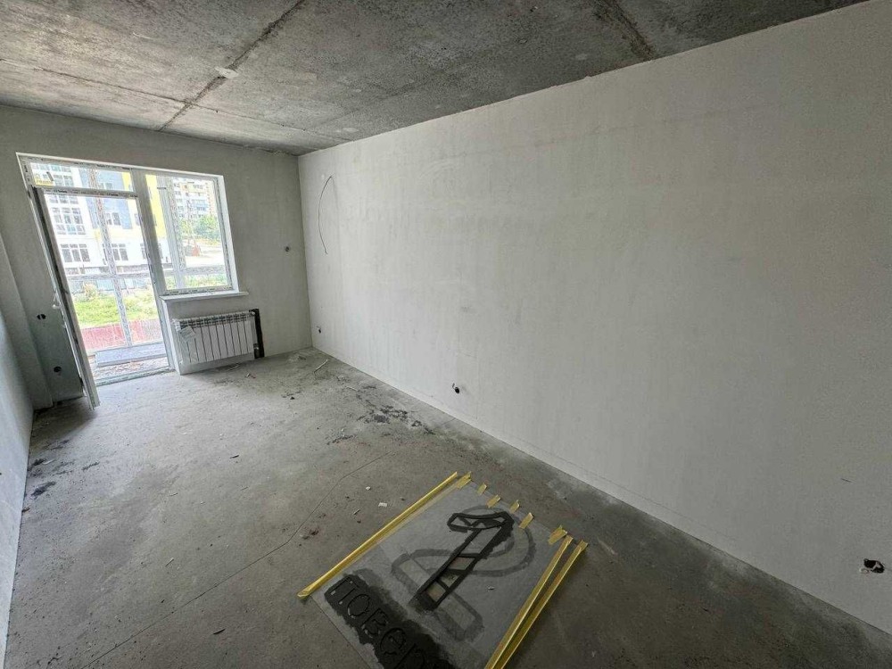 Стан - після будівельників (виведені труби, зроблена стяжка, чистова штукатурка на стінах).