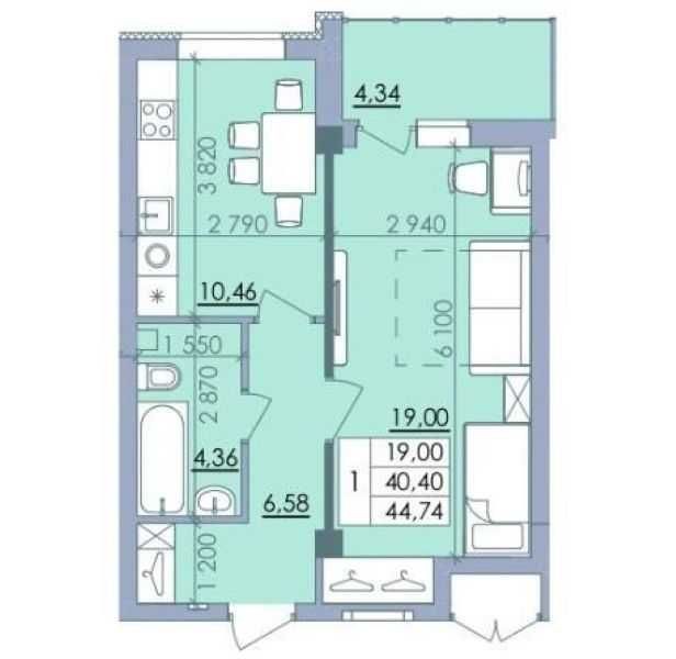Квартира площею 45 м кв, яка знаходиться в ЖК ПЕЛЮСТКОВИЙ на Браїлках.