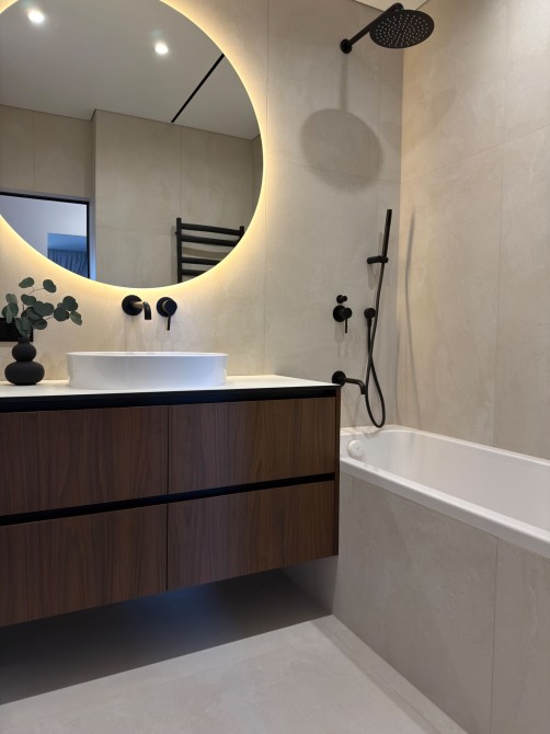 Квартира максимально укомплектована якісними меблями та технікою: посудомийна машина, духова шафа, витяжка, мікрохвильова піч, вбудований холодильник, два кондиціонери. Встановлено систему теплої підлоги для додаткового комфорту.
