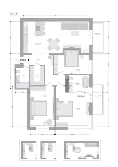 - три окремі спальні