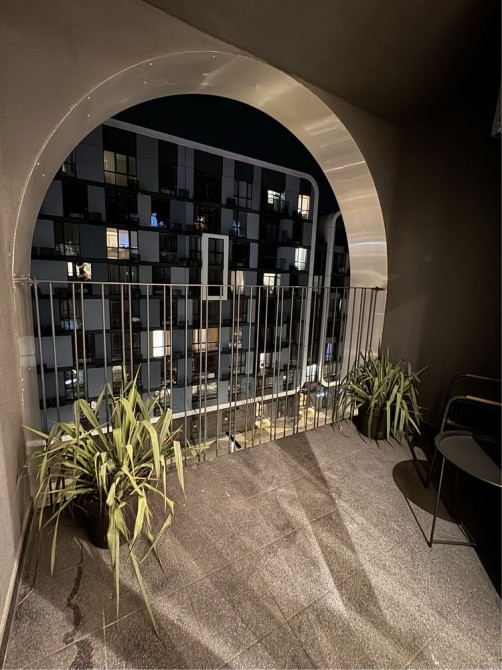 Великий балкон з виглядом у затишний двір.