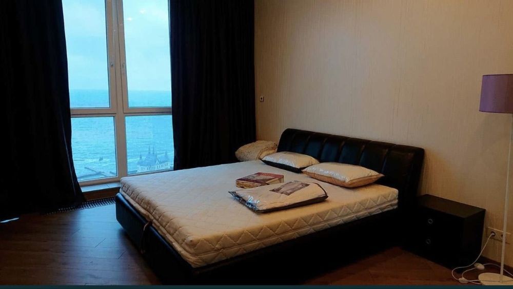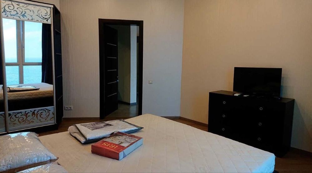В спальне большая кровать 180х200 с видом на море