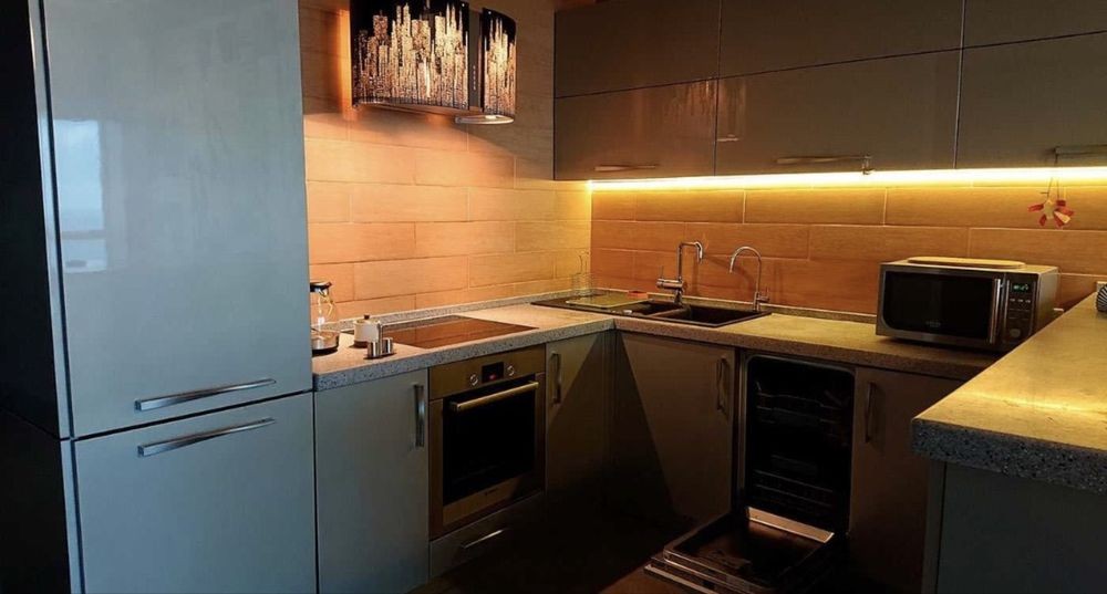 Полноценная кухня, посудомойка, фильтр воды.
