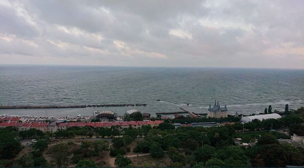 Панорамный вид на море и парковую зону.