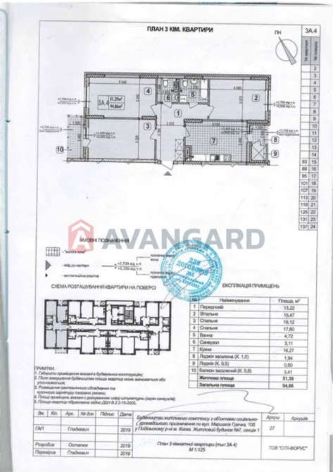 -загальна площа квартири 95,2 кв.м. -житлова 51,5 кв.м. -кухня-студія – 16,3 кв.м. - три кімнати – 15,5; 18,1 та 17,8 кв.м.