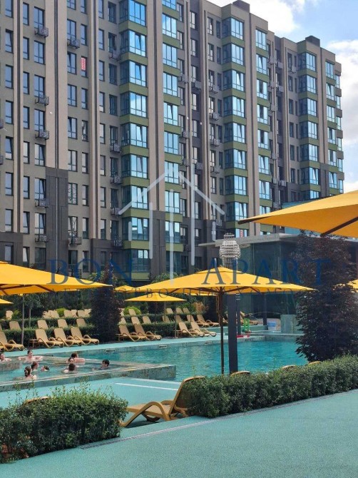 Закритра прибудинкова територія, охорона, зони відпочинку із комплексним озелененням, універсальний спортмайданчик, басейн.