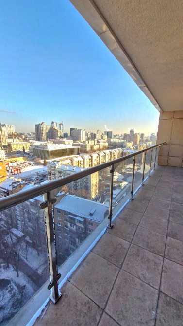 Вид з кухні - на Костел та НСК «Олімпійський», з кімнат і тераси - на Палац Україна.