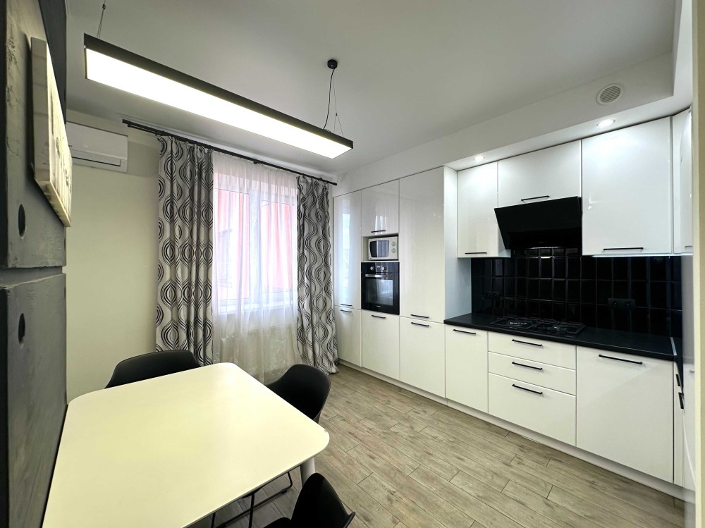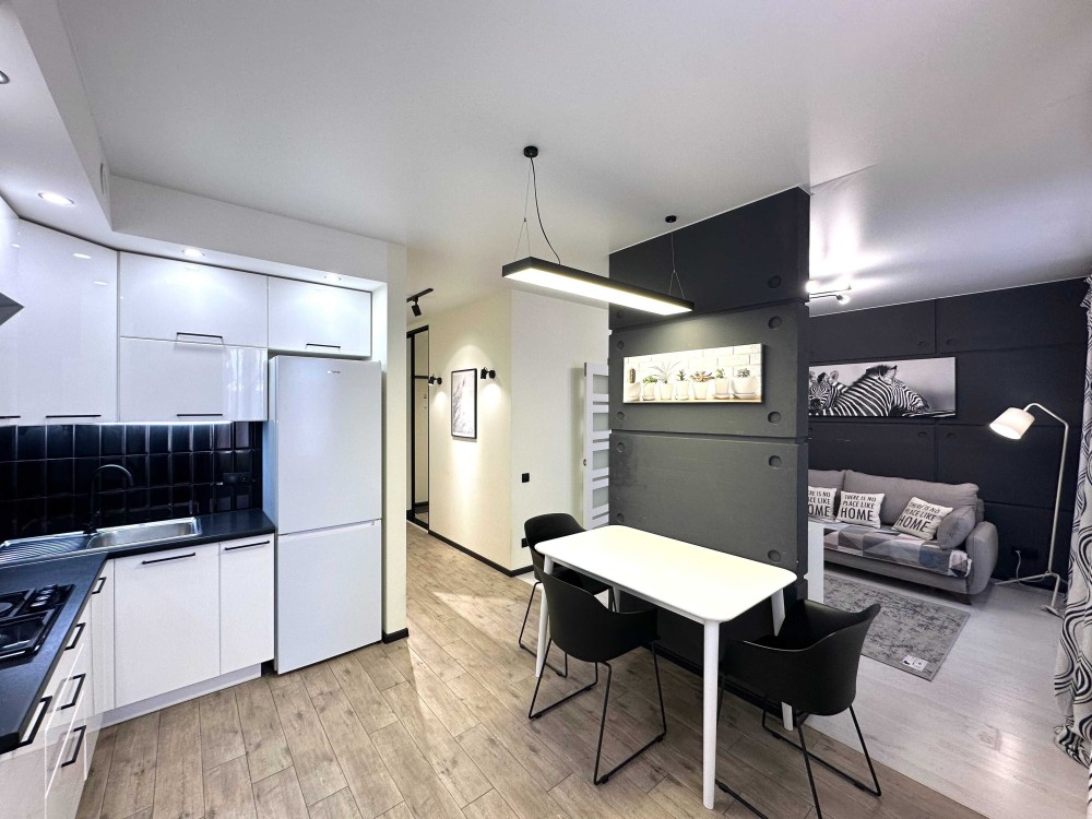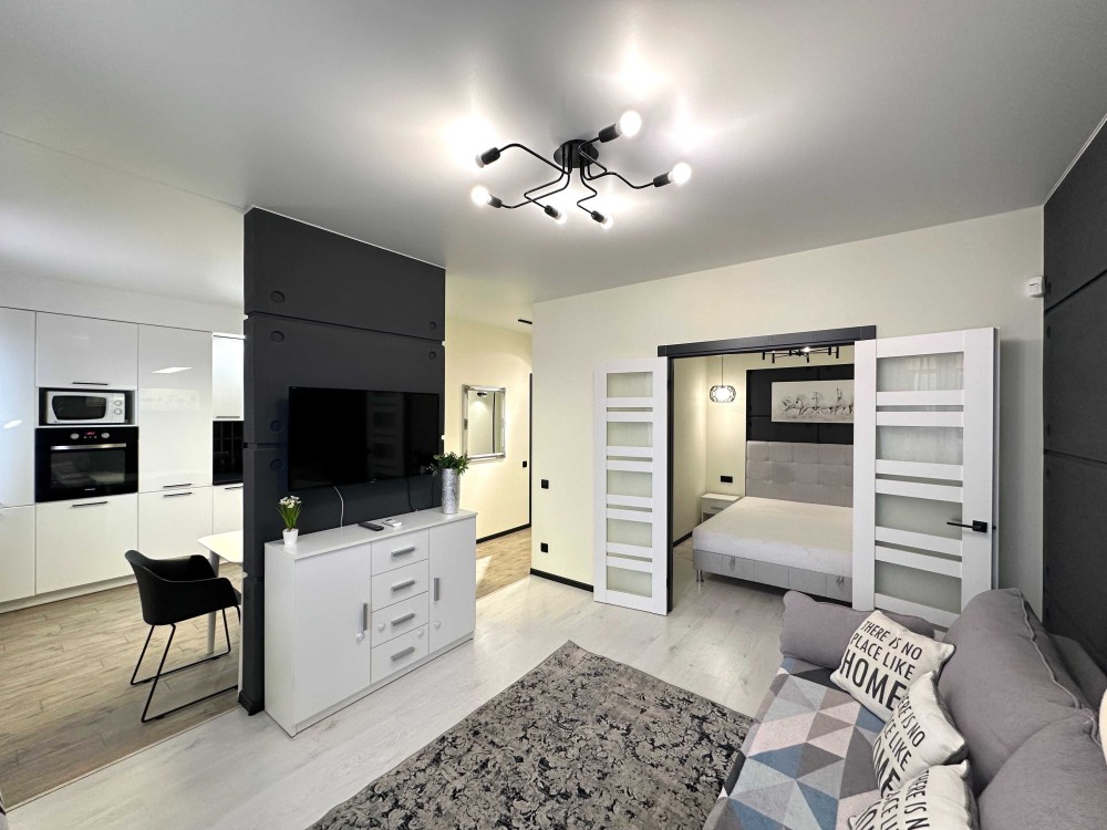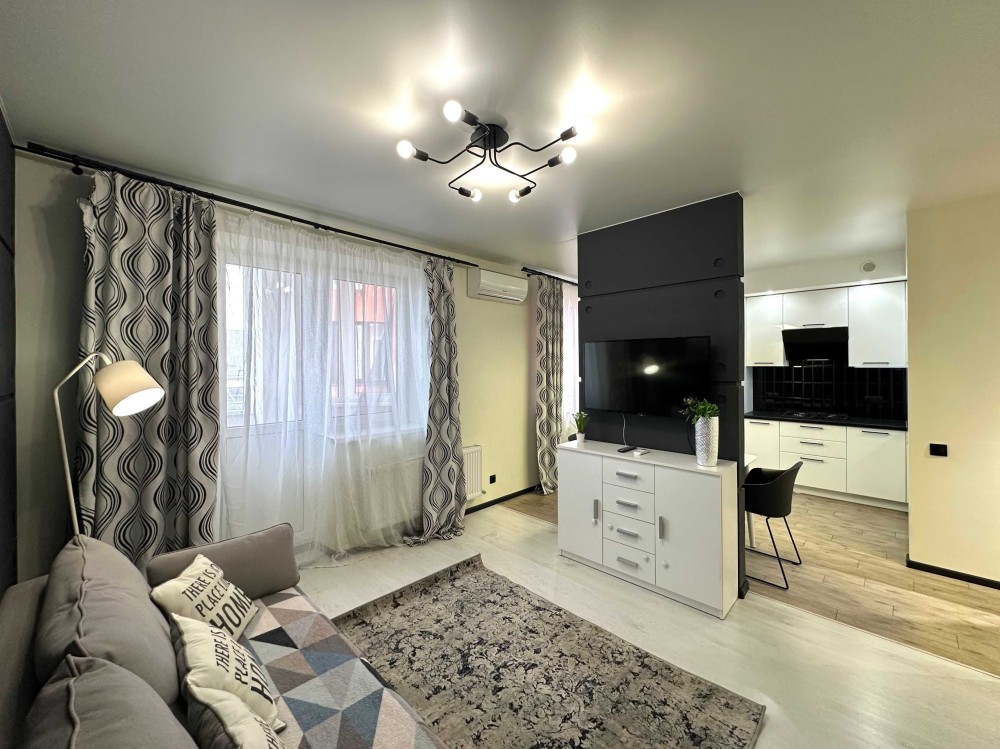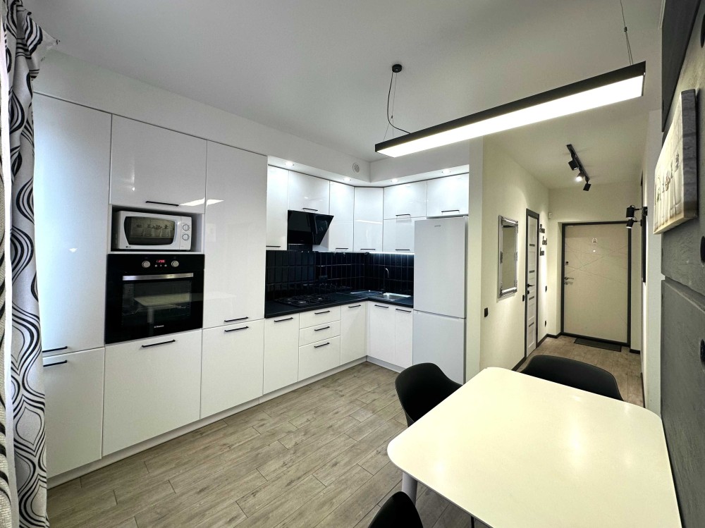 Простора квартира з якісним ремонтом, повністю укомплектована меблями та технікою! Загальна площа 43,9 кв. Простора кухня-вітальня, встановлена вбудована кухня, укомплектована необхідною побутовою технікою: варильна поверхня, духова шафа, витяжка, мікрохвильова піч, двокамерний холодильник, стіл зі стільцями. У вітальній великий розкладний диван, комод, кондиціонер, телевізор. У спальній кімнаті встановлене двоспальне ліжко з нішею для зберігання речей, тумби, вбудована шафа-купе. Великий санвузол з повноцінною ванно, пральна машинка автомат, умивальник з тумбою, дзеркало, унітаз, сушка для рушників. У коридорі вбудована шафа-купе. З вітальної вихід на засклений балкон. Заведено інтернет. Без тварин. 2 поверх.