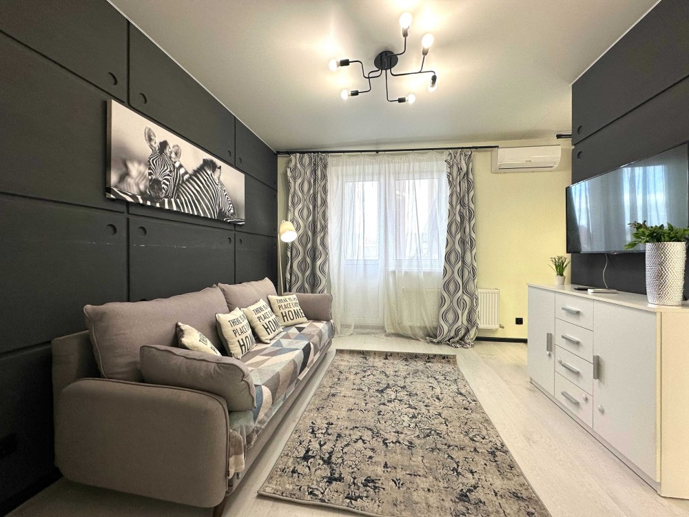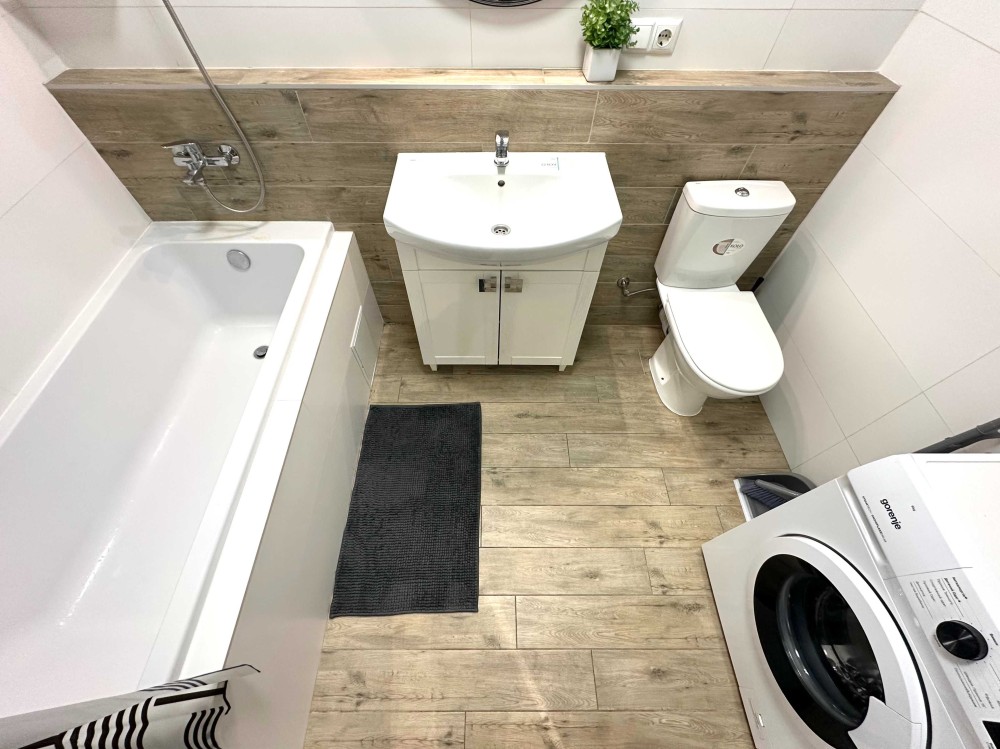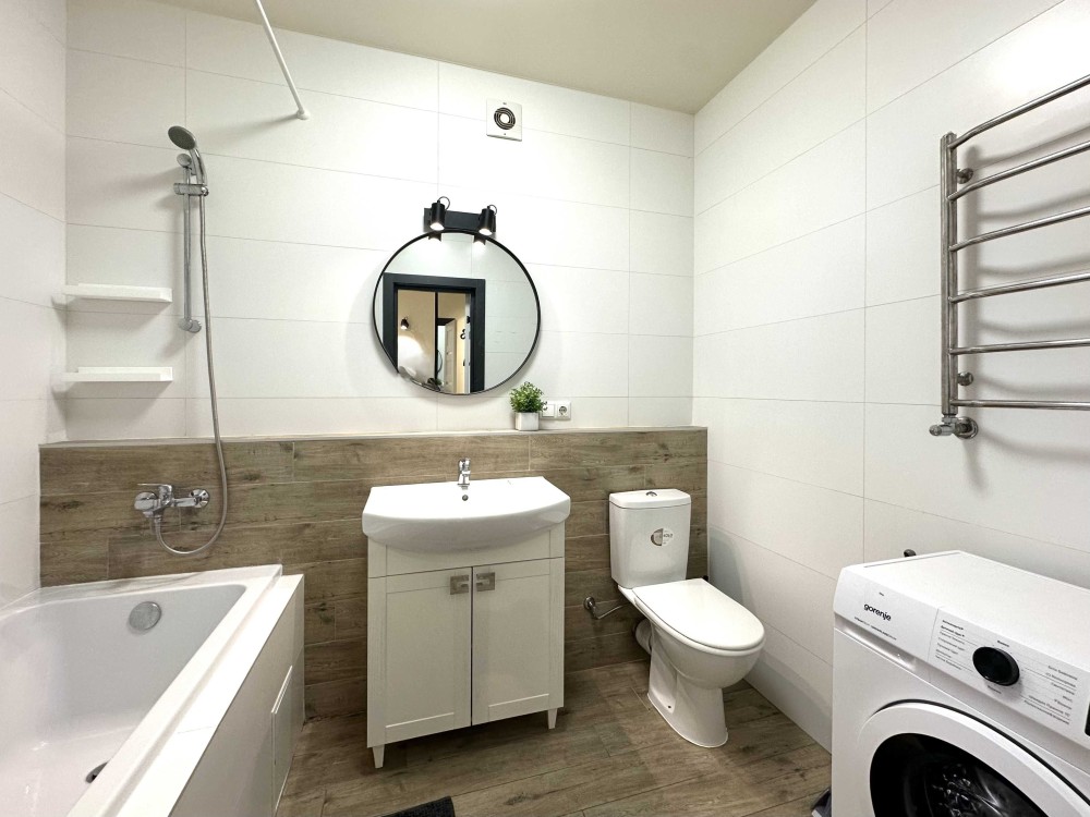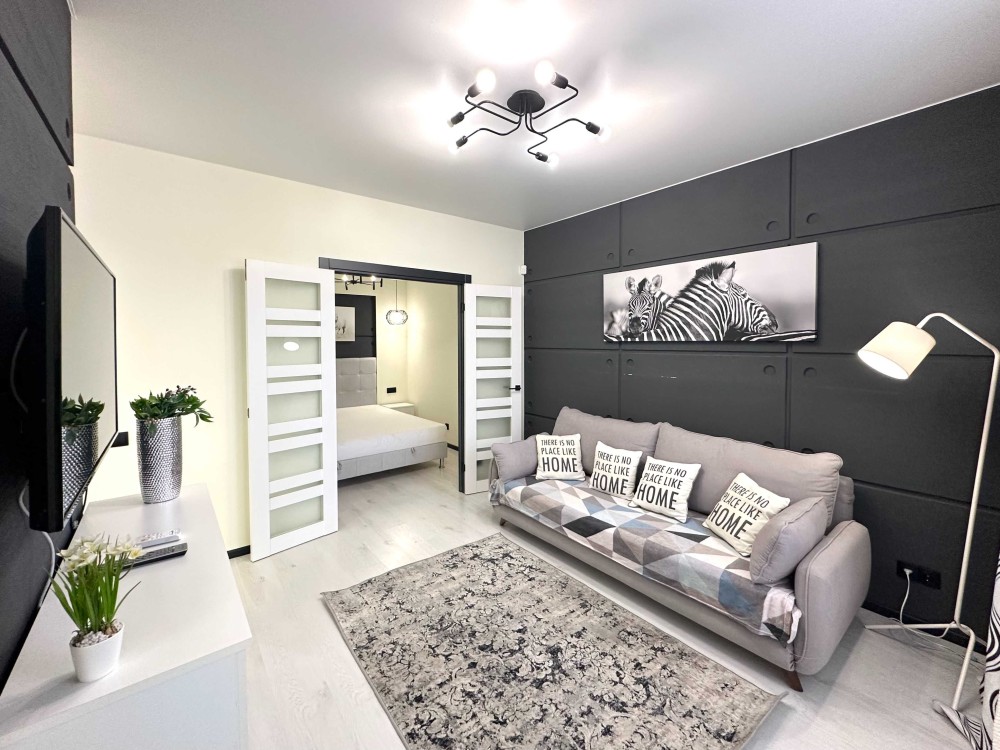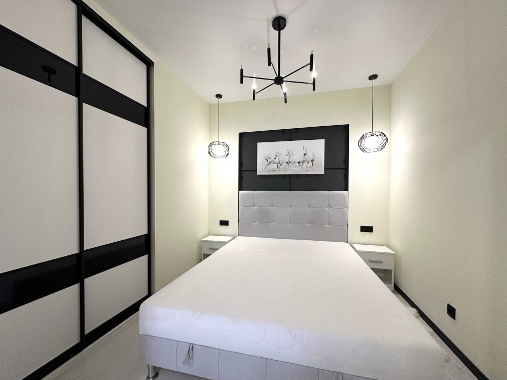 Простора квартира з якісним ремонтом, повністю укомплектована меблями та технікою! Загальна площа 43,9 кв. Простора кухня-вітальня, встановлена вбудована кухня, укомплектована необхідною побутовою технікою: варильна поверхня, духова шафа, витяжка, мікрохвильова піч, двокамерний холодильник, стіл зі стільцями. У вітальній великий розкладний диван, комод, кондиціонер, телевізор. У спальній кімнаті встановлене двоспальне ліжко з нішею для зберігання речей, тумби, вбудована шафа-купе. Великий санвузол з повноцінною ванно, пральна машинка автомат, умивальник з тумбою, дзеркало, унітаз, сушка для рушників. У коридорі вбудована шафа-купе. З вітальної вихід на засклений балкон. Заведено інтернет. Без тварин. 2 поверх.