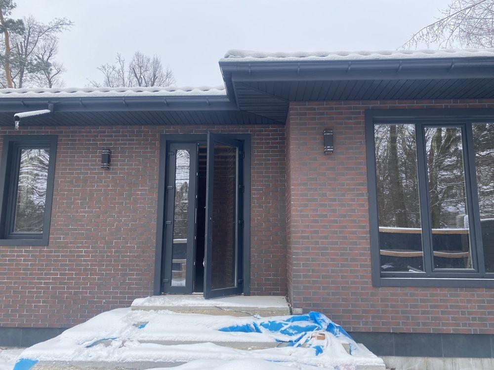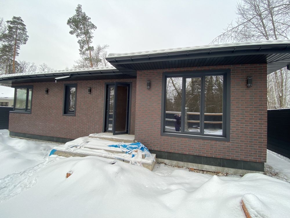 В ціну входить штукатурка, передній бетонний забор в такому ж клінкері, як і фасад, рівна ділянка і бруківка.