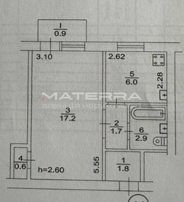 Кімната — 17,2 м² (є вихід на балкон 0,9 м² та окрема шафа 0,6 м²)